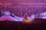 Teleにとって初となる日本武道館公演を皮切りに、全国9カ所で公演が行われる「箱庭の灯」。ツアータイトルにある“箱庭”は、砂を敷き詰めた小さな箱の中に自由に玩具を置いていくことで自身の心の中を表現していく心理療法、箱庭療法を指しており、砂に見立てた白いセットの中には、「カルト」のミュージックビデオでも象徴的に使われていたエアコンの室外機や電柱などが埋もれ、リンゴが転がっていた。