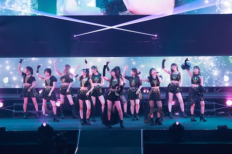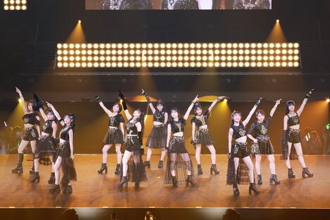 開演前、Juice=Juiceファミリー(Juice=Juiceファンの呼称)からの熱烈な「あーりー」コールが鳴り止まぬ中、黒を基調としたシックな衣装のJuice=Juiceが登場。11人は植村のメンバーカラーである“メロン色”のリストバンドをおそろいで着けている。冒頭から、メジャーデビュー曲「私が言う前に抱きしめなきゃね(MEMORIAL EDIT)」、ライブで人気の「Borderline」、新曲「トウキョウ・ブラー」とダンサブルな楽曲が続き、会場に一体感が生まれていった。