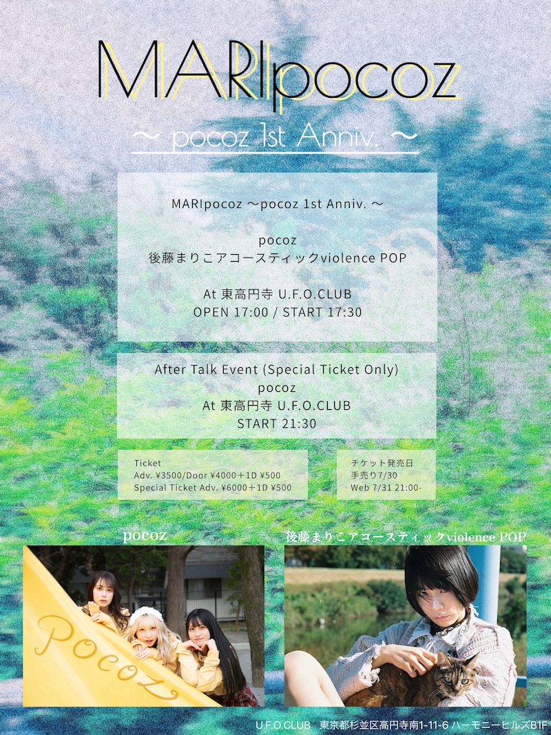 9月21日のライブは、pocozが現在の体制になってから1周年を迎えたことを記念して行われる企画。ライブのあとには、スペシャルチケットの購入者のみ参加できるpocozのアフタートークイベントも開催される。