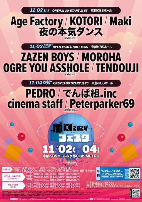 11月2日から4日にかけて京都・KBSホールで行われるイベント「ボロフェスタ2024」の出演アーティスト第1弾が発表された。