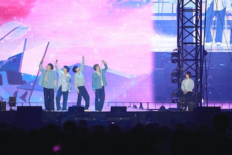 「Dreamer」で美しい歌声を響かせた5人。その後披露された「誓い(CHIKAI)」のリード曲「ひとつの誓い(We'll Never Change)」では紐を使ったパフォーマンスでMOAの視線を引きつけた。5人はダンサブルな「I'll See You There Tomorrow」で本編を締めくくり。座っていたBEOMGYUをHUENINGKAIが背負って5人はステージを去った。