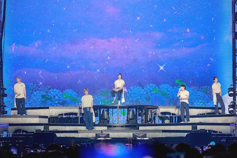 韓服に着替え、扇子を手にした5人は「Sugar Rush Ride」「Farewell, Neverland」といったオリエンタルな魅力があふれる楽曲を披露し、大勢のダンサーとともにこのツアーのために用意したスペシャルなステージを展開していく。背中に天使の羽が刺繍されたスカジャンの衣装に着替えたあとはニュートロな雰囲気の「Chasing That Feeling」やMOAと歌って踊って盛り上がる「MAGIC」といった楽曲をパフォーマンス。その後5人はそれぞれが思う、MOAにとって魅力的な表情や仕草を披露して会場を沸かせ、「MOAとTXT一緒の夏は最高」というメッセージをコール&レスポンスしてMOAたちの心をひとつにした。