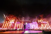 夏の空気に満ちた場面を経て、ミセスは近未来感のあるグラフィックをバックに「Blizzard」をクールにプレイ。涼やかな水色のレーザーライトに彩られながら、オーディエンスが一斉に飛び跳ねる壮観な光景が広がった。そして力強いドラミングから「インフェルノ」で会場は“吹雪”から“猛火”に一気に場面転換。客席が燃えるような赤に染まる。熱いコールを浴びながら、彼らは炎が吹き上がるステージで迫力のある演奏を繰り広げた。その勢いのまま、バンドは「私は最強」へ突入。スモークが噴射される舞台で勢いよくエネルギーを開放するようにこの曲を届けた。ミセスのダークな一面が凝縮されたナンバー「Loneliness」ではさらに激しい火柱が乱立し、レーザーライトが交錯。カオティックな光景の中で大森は、センターステージを這うように膝をついて低くうごめくような歌声を放った。