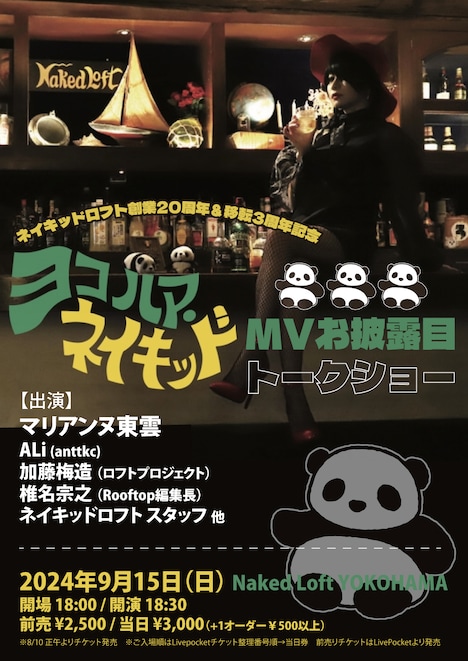 マリアンヌ東雲はネイキッドロフト横浜の移転オープンを祝し、イメージソング「ヨコハマ・ネイキッド」を書き下ろし。ミュージックビデオ制作も決定した。トークイベントはその上映会も兼ねたもので9月15日に同会場で行われる。チケットは8月10日にLivePocketで発売される。
