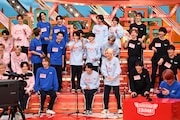 予選Aブロックで激突するのは超特急のシューヤ、BUDDiiSのSEIYA、Lienelの高桑真之。3人はEBiDAN全体曲である「前略、道の上より」のノーマルモードでハイスコア獲得を目指す。グループの代表として文字通り“NORI! NORI!”でプレイを楽しんだり、日頃鍛えたゲームの実力を遺憾無く発揮する3人の姿をそれぞれに見守るメンバーもまた、全力の応援でプレイヤーをサポート。ときに歌い、踊りながら声援を送る姿にも注目を。