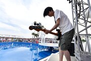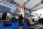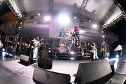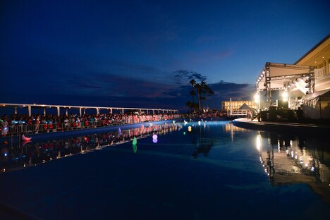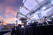 ライブステージが設けられたのは、いくつものヤシの木と青々とした芝生に囲まれたプールサイド。リゾート感満載の会場に一歩足を踏み入れると、目の前にはどこまでも広がる水平線、空には白い雲が浮かぶ。この日の逗子の最高気温は35℃超え。しかし、会場内には心地いい海風が吹き込み、絶好の野外イベント日和とも言えるシチュエーションが作り上げられていた。