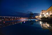 EBIのハイトーンボイスが映える初期の名曲「ペケペケ」では、奥田と手島がEBIを挟み込みながら楽器を操り、「WAO!」ではABEDONがフライングVを奏で、その傍らで奥田がカウベルを軽快に叩き、阿吽の呼吸を見せつける。こなれた5人のパフォーマンスに沸き立つプールサイドの熱気は、ゲストのPUFFYが合流するとさらに上昇した。ゲストを招いてのコラボコーナーはいずれも大きな盛り上がりを見せていたが、観客を最も驚かせたのはユニコーン「ヒゲとボイン」とPUFFY「アジアの純真」のマッシュアップだ。ABEDONがきらびやかなシンセの音を鳴らし「ヒゲとボイン」が始まるかと思いきや、PUFFYが「アジアの純真」を歌い出し、気付けば奥田がメインボーカルをとる「ヒゲとボイン」にシームレスに移行。オーディエンスはこのイベントならではのアレンジを味わい尽くしたのち、ステージ上の7人に大きな拍手を贈った。