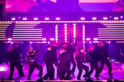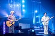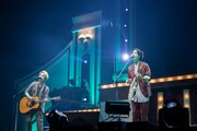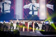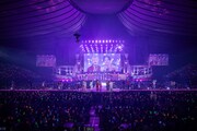 「エビライまだまだ楽しんでいきましょう!」。高岡の声を受け取ったさくらしめじは「simple」で後半のパフォーマンスメドレーをスタートさせた。このセクションではグループごとのパフォーマンスコラボが次々と展開され、フラッグを手に姿を見せたICExのメンバーが田中雅功と高田の歌声を彩る。続くM!LK「テレパシー」ではLienelが冒頭のパフォーマンスを担い、フレッシュな歌声と笑顔をめいっぱいに振りまいて先輩にバトンタッチ。総勢11人での「テレパシー」ではM!LKとLienelのメンバーがペアになって歌声を響かせるという、和やかな光景が広がる。そしてBUDDiiSの「The One」にはONE N’ ONLYの6人が合流。EIKUはこの曲最大の見せ場である“ラブコール”のパートを担い「今日1つだけ伝えたいことがある。……好き!」とセンターステージ中央で愛を告げた。そのままONE N' ONLY「EVOL」へと展開すると、BUDDiiSの10人も花道に大きく広がってエネルギッシュに躍動。アイコニックな“稲妻”ポーズを決めて、会場中が一体となる大きな「Hey!」コールを巻き起こした。
