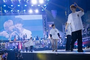 62名がステージの各所から現れ、ファンと笑顔を交わした全体曲「恋のDing-Dong」を経て、中盤のMCタイムでは吉田仁人(M!LK)、FUMINORI(BUDDiiS)、大倉と、MC力に定評のあるEBiDANメンバーがリードする企画コーナー「バックヤードグランプリ」が展開された。「YELLOW ISLAND」公演では、田中雅功、竹野、TAKUYAの挑戦者3人が持ち寄った差し入れの中でどれが一番よかったかを観客が選ぶバックヤード中継が行われ、メインステージに立つ吉田とFUMINORI、レポーター役の大倉は田中雅功やTAKUYAの“ボケアイテム”に容赦なくツッコミを入れながらやりとりを交わしてファンを楽しませる。フルーツゼリーでまっすぐに勝負を挑んだ竹野、瓶詰めのアポロチョコという奇抜な差し入れを用意したTAKUYAを差し置いて、最も多くの拍手を集めたのは「ONE PIECE」60巻分を代々木第一に運び入れた田中雅功。まさかの結果に本人も「そんなわけない!」と笑いつつ「仲間たちとたくさんの航海をしてきたので、それが報われたと思います!」と喜びのコメントを残した。