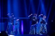 昨年の「エビライ」で大きな話題を呼んだ、EBiDANダンス部によるパフォーマンスステージ。今年は、ダンス部初参加となる筒井のタップダンスで幕を開ける。静寂に包まれた代々木第一のセンターステージ、筒井がステップを踏むと硬質なタップ音が広い空間に響き、その軽やかな躍動に客席からは自然とクラップが発生。新たな才能が光を放ったオープニングを経て、メインステージに集ったダンス部メンバーはミステリアスなダンストラックに乗せての群舞を見せ、センターステージでのダンスサイファーへと突入した。今年のサイファーには、新たなメンバーとして池田彪馬(SUPER★DRAGON)、SHOW(BUDDiiS)、山本、森田璃空(Lienel)と、EBiDAN NEXT(研究生)から黒木将盛、玉木盛柊、西田瑛音が参加。重厚感のあるヒップホップで圧倒した池田、しなやかなジャズダンスを踊ったSHOW、キレのあるロックダンスを見せた山本、ダイナミックな躍動とアクロバットで歓声を誘った森田。それぞれが全力で輝かせたダンサーとしてのアイデンティティに、ユーキを筆頭にしたサイファーメンバーも惜しみない喝采を送っていた。