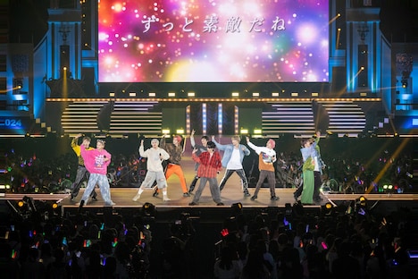 ICExの8人から超特急へのリレーと2組のコラボが展開された超特急「My Buddy」では、落ちメロで背中合わせになるカイ&八神、ユーキ&志賀ペアの愛らしい表情が大きな歓声を集める。「エビライ」ならではのコラボレーションで楽しませた7曲を駆け抜け、ユーキは「皆さんと無事初日を迎えられたこと、本当にうれしく思っています。皆さんと一緒に、この先も最高の時を描いていきましょう」と呼びかけ。62人は全体曲「New day! New wave! (2024 ver.)」で、晴れやかに本編を締めくくった。