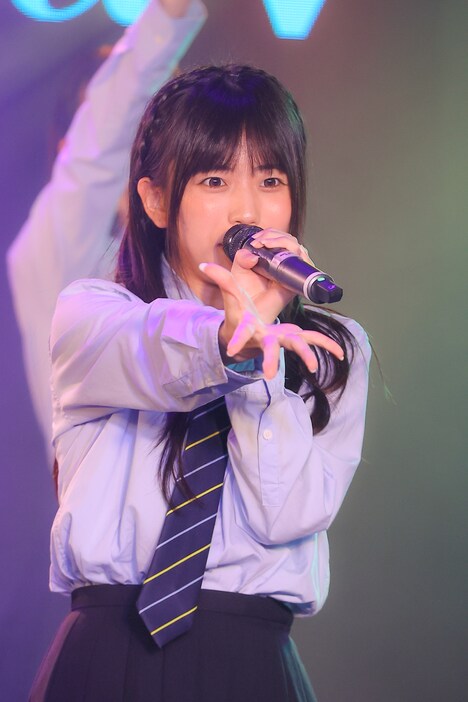 中盤からは青いシャツの制服に衣装チェンジし、ユニットコーナーへ突入。黒瀬、田中、西村が「ひこうき雲と青い空」を“青春感”全開で歌い上げたかと思えば、ダンスナンバー「No Way」では川又と古松がキレのあるダンスを披露して観客の目を釘付けに。さらに園田と田中が「100秒と6文字でおしえて」をキュートな振付でパフォーマンスし、ファンを大いに魅了した。