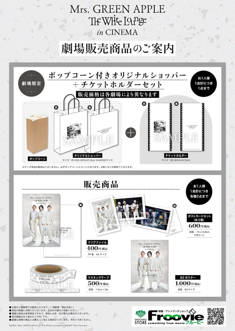 オリジナルグッズには約90カットのライブ写真やメンバーのロングインタビューを掲載した豪華仕様のパンフレット、ポップコーン付きオリジナルショッパーとチケットホルダーセット、クリアファイル、さらにはB2ポスター、ポストカードセット、マスキングテープが用意される。