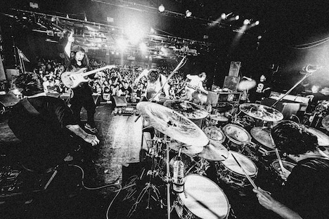 「20周年、さらに盛り上がっていくと思うので、引き続き9mmを楽しんでもらえますでしょうか?」と話し、大きな拍手を浴びた菅原。さらに「こうしてライブハウスに集ったからには、一緒にどこまでも行ってもらえますか?」と続け観客を煽ったのち、「Brand New Day」でライブは最終盤へ突入した。滝善充(G)のテンションがピークに達し、ギターを弾かずに駆けずり回ったり、ステージ後方のスペースによじ登ったりする時間もありつつ、スーパーの店頭でおなじみの「呼び込み君」の旋律でひとしきりフロアを踊らせた9mmは、そのままキラーチューン「Talking Machine」へとなだれ込み、この日一番の熱狂を生み出す。そして彼らはラストに「ロング・グッドバイ」をアグレッシブにパフォーマンス。たくさんの祝福の声を受け取り、すべてを出し切った清々しい面持ちでステージをあとにした。