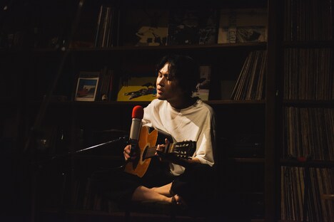 アコースティックギターからガットギターに持ち替えた水野は、初めて失恋したときに作ったという曲の一節を歌唱。「聞いてられないでしょ。めちゃくちゃ女々しい歌(笑)」と口にして演奏を止めると、サンダルを脱ぎ椅子の上であぐらをかく。寝床でささやくように歌われたのは「おつかれさまだよ」。最新アルバムの収録曲「さこちゃんの描いた絵」では、健康的なメロディに不健康な詞を乗せるという水野のお家芸が存分に披露された。