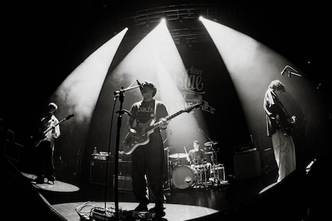 2番手のKOTORIは、横山優也(Vo, G)が「世界で一番好きなバンドの曲」だというbachoの「ビコーズ」をカバー。エモーショナルなサウンドに乗せて、bachoのグッズTシャツを着た横山が愛を込めるようにじっくりと歌い上げた。横山は競演の3組に向けて「同じ時代に同じステージに立ててよかったなと思いました」と噛み締めるように言葉を送る。感動的なムードの中で披露された「素晴らしい世界」ではAメロからBメロまでのほぼすべてを観客がシンガロング。横山が満足気な表情で客席を見渡したかと思えば、「世界で一番好きなボーカリスト!」とbachoの北畑欽也(Vo, G)を呼び込む。2人は肩を組みながら力強く声を重ね、観客の胸が熱くなるようなワンシーンを作り上げた。その後、横山が「bachoに向けたラブソングやって終わります」と前置き、KOTORIは最後に「Masterpiece」をまっすぐにbachoへと届けた。