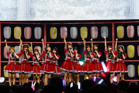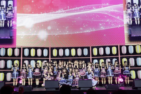 続いてHKT48とNGT48のメンバー総勢75名がステージに勢ぞろいし、NGT48「シャーベットピンク」とHKT48「しぇからしか!」でコラボパフォーマンスを披露。NGT48の清司麗菜は「最後までスペシャルになっているので、それぞれのグループのよさを見つけて、全員のことを覚えるくらいの気持ちで帰っていただけたらうれしいです!」と観客に呼びかけた。その後は各グループの代表曲である「世界はどこまで青空なのか?」「メロンジュース」が披露されるなど、初日とは異なるセットリストでライブが進行。NGT48の4期研究生が「ポンコツな君が好きだ」、HKT48の7期研究生が「君のことが好きやけん」を歌う場面もあり、それぞれの若手メンバーによるフレッシュな歌とダンスが届けられた。ライブ中盤にはメンバーが客席へ降り、抽選で選ばれたファンのもとへ会いに行くサプライズ演出も。さらにNGT48は「一瞬の花火」、HKT48は「僕はやっと君を心配できる」とそれぞれ最新シングル曲をパフォーマンスし、グループの最新型を見せつけた。