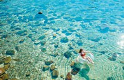 柏島の海で撮った写真です。私が浮き輪に乗って海にぷかぷか浮かんでいる写真なんですけど、海の透明度が凄すぎて底の石とか岩が見えてるんですよ。波が立ってるのもすごくきれいで写真としてすごく素敵な1枚だなと思ってお気に入りです。