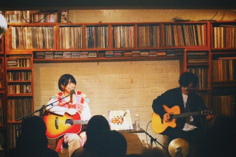 ミラーボールがゆったりと回転し、穏やかな空気が流れる会場。そこにヒナタミユとトヨシが姿を現すと、観客は温かな拍手で迎え入れる。2人は「素直」でライブをスタートさせ、繊細さや力強さを併せ持った歌声とギターの音色、トヨシお手製の“足ドラム”によるビートを響かせていく。そのまま「無添加」「キリミ」が演奏され、トヨシが激しいギタープレイを繰り広げたあとには大きな拍手が沸き起こった。その後ヒナタは初めてのツアーについて振り返りつつ「楽しんでいってください」と声をかけ、「少し泣く」を歌唱。続く「鬱夢くたしかな食感」ではトヨシの複雑で情動的なギターサウンドが炸裂し、その優しくも歪な音に観客は浸り続けた。