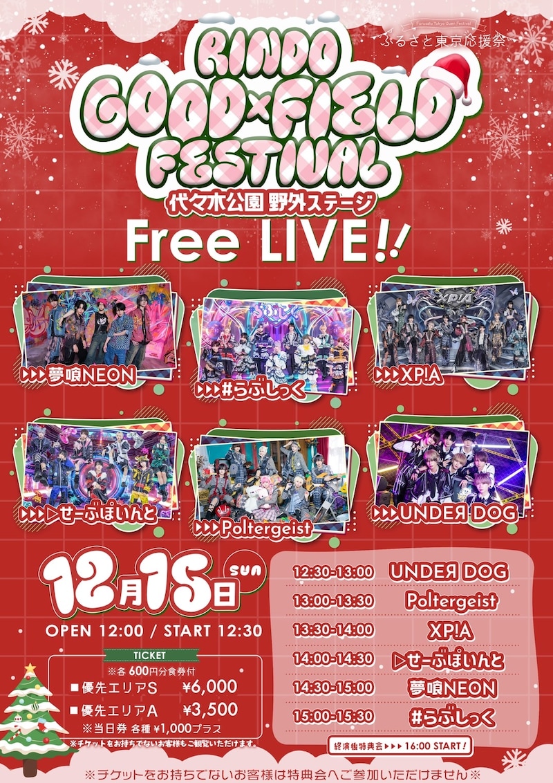 RINDO Entertainment、グッドチョイスエンタテインメント、rock fieldによる3社合同イベント「RINDO GOOD×FIELD FESTIVAL」が12月15日に東京・代々木公園 野外ステージで開催される。