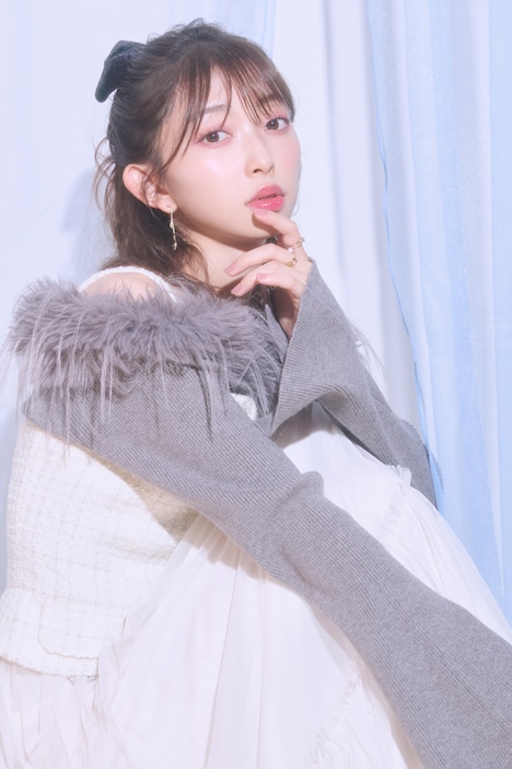 さらに、体を反らせてベッドから滑り落ちている様子を捉えたカットもお気に入りの1枚とのことで、「普通に楽しんで笑いながら撮ったカットで、私っぽさが出ていたり、あまりない構図で面白いなと思います。ファンの方は私が昔から持っている子供っぽい部分も好きだと思うので、そういう素が出ているカットも欲しいなと考えていました。泡風呂のシーンも、普通だったら大人っぽい感じになりがちだと思うんですけど、顔に泡が付いちゃってるお茶目なところも撮っていただきました」と柔らかい笑顔で語った。