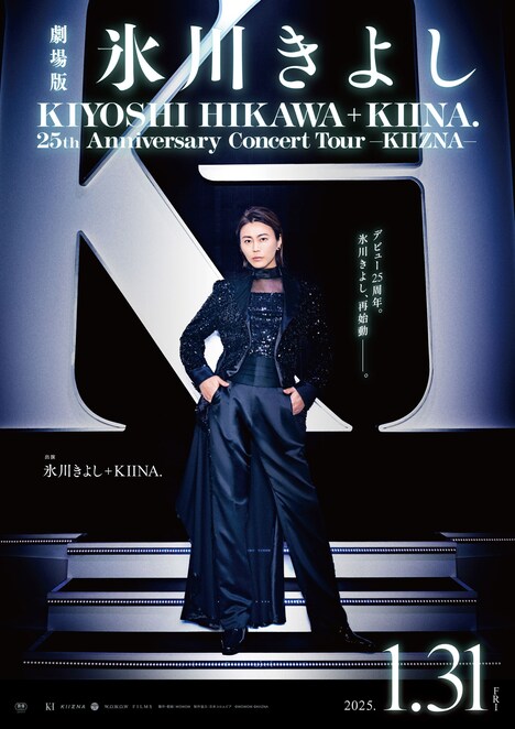 「氷川きよし / KIYOSHI HIKAWA+KIINA. 25th Anniversary Concert Tour ~KIIZNA~」は2022年末から歌手活動を休養していた氷川が復帰を果たした今年のコンサートツアーの模様に、ドキュメンタリー映像を追加収録した作品。メインビジュアルは「氷川きよし+KIINA.」の新たなロゴを背に、黒いタキシードに身を包んだ氷川の凛とした立ち姿が印象的な仕上がりとなっている。その横には「デビュー25周年。氷川きよし、再始動──。」とキャッチコピーが添えられている。