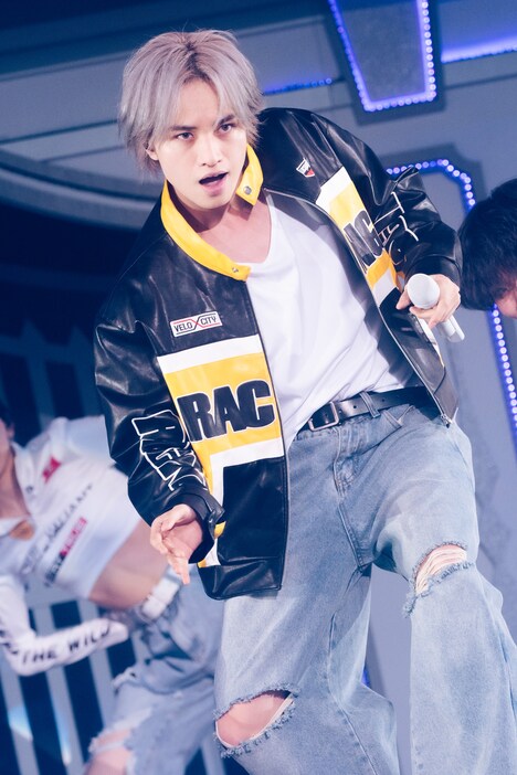 その後、中島がトロッコに乗って現れて「カレカノ!!」を歌い始めると、そのトロッコにはキタニの姿も。人生で初めてトロッコに乗ったというキタニは「やばいやばい!」と大はしゃぎ。中島の“キラカード”がセットされた銃口ペンライトを無邪気に客席に向け、「カレカノLOVE PEACE!!」のコールに合わせてピースサインを掲げた。キタニはセンターステージから客席を見渡し、「とんでもない体験をありがとうございます! こんな景色を見てたの? ケンティーは。うらやましいですね!」とにっこり。中島に人生初のトロッコの感想を問われると、キタニは「初というか、これで最後よ」と感慨深げに語る。中島が「また乗ってほしいよね?」と言い出すと、キタニは「もう、乗っちゃうじゃん! そんなこと言われたら。この人にノせられてここまできちゃったんだから! みんな健人さんのひと声でなんでもやらされちゃう」と中島にすっかり頭が上がらない様子だった。中島とガッチリと握手を交わしてキタニはステージをあとに。中島はスタンドの観客と同じ高さの場所まで行ける昇降式のバックステージでバラードナンバー「Love風」を歌い上げ、「一生離さないよ」と愛の言葉を告げる。さらにサマーソング「Hey!! Summer Honey」を晴れやかに届けたあと、中島は一瞬で笑顔からセクシーな表情に切り替えて「Black Cinderella」をパフォーマンスした。