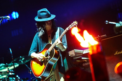 「たくさんの人たちに支えられて、この横浜アリーナのステージに立ってます。ありがとうの気持ちを曲に、歌に、楽器に詰め込んで皆さんに届けますので、僕らの愛情を受け止めてください」というTERUの言葉を合図に、トーチに炎が灯り、「Beautiful like you」へ。静まり返った会場にTERUの切実な歌声と、TAKURO、HISASHI、JIROによる穏やかなアンサンブルが響き、しみじみとした空気が広がる。ラストでTERUが「私はいつでもあなたのそばにいる」とささやくと、客席のあちこちから「ほうっ……」とため息が漏れた。