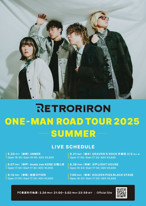 1月に発表したEP「アナザーダイバーシティ」のリリースワンマンツアーを実施中のレトロリロン。4人は新たなツアーでも同じく「アナザーダイバーシティ」を携え、5月30日の静岡・Shizuoka UMBERを皮切りに、単独公演を行ったことがない全国6カ所を巡る。オフィシャルファンクラブではチケット先行抽選予約を3月2日まで受け付けている。