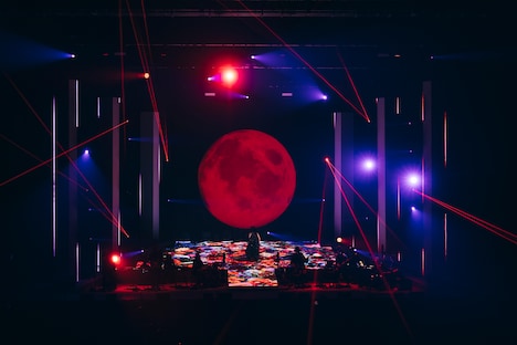 黒いドレスに衣装チェンジしたAimerは、そっと祈りを捧げるように「歌鳥風月」を歌唱。Aimerの背後で月は少しずつ光を取り戻していく。「Sign」では三日月と星が浮かぶ夜空をバックに、たおやかな歌声が広がった。「じゃあ、ここからは一緒に満ちていこうか!」とAimerは告げ、観客のハンドクラップを浴びながら「おもかげ」を披露。月の光が広がっていくのと同時に、会場は温かな愛で満たされていく。さらにAimerは「spiral dance」でみずみずしい歌声を届けたあと、 “銀朱の月”を背にして「残響散歌」を勢いよく歌い上げた。