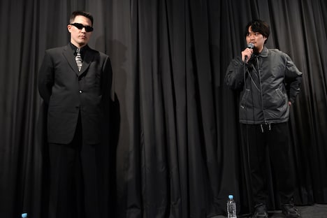 舞台挨拶には監督の鈴木と主演のACE COOLが登場。鈴木は、ACE COOLへのオファーの経緯について「冒険したキャスト候補を挙げていた中でもACE COOLさんは特別というか。実家でアニメを作っているときに『虚無主義』という曲に出会って『明暗』というアルバムをずっと聴いて、カラオケしながら作ってるような感じだった」と振り返り、「ほかの人と違って、敵と戦っているのではなくて、自分と戦っているイメージを感じて、その孤高感がこの映画の主人公にハマるんじゃないかと思った」「出演者でありつつ、インスピレーション源でもあるという感じです」と語った。