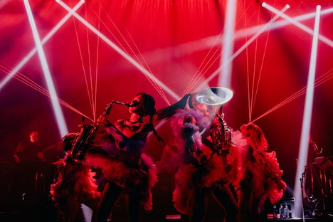 ステージ上に配置されたミラーボールやフロア後方まで鋭く伸びるレーザー照明が場内を彩る中、CiONは序盤からアッパーな楽曲を連発する。栞音と愛佳のパワフルかつ艷やかなボーカル、佳子と聖奈が鳴らす時に軽快で時にムーディなブラスサウンド、ピアノとショルダーキーボードを操る杏実による繊細かつ安定感のある鍵盤の音色。そこにバックバンドの盤石な演奏、曲に合わせて腕を掲げる観客の熱量が加わり、ライブの迫力が右肩上がりに増していった。MCに入ると、栞音は「やっとこの日を迎えられました」「みんなまとめて最高の笑顔にして帰らせたいと思います」と感謝の思いと意気込みを口に。5人それぞれ、パフォーマンス中の姿とは大きなギャップを感じさせる天真爛漫なはしゃぎっぷりを見せた。特に佳子は小島よしおのギャグ「オッパッピー」をそれなりの長尺で披露するなどやりたい放題。その興奮度合いにこのライブに懸ける思いが表れていた。