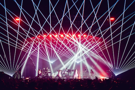次のブロックでもアグレッシブなナンバーが並び、メジャーデビューシングルに収録されるサザンオールスターズ「エロティカ・セブン EROTICA SEVEN」のカバーもセットリストに。ライブが進むにつれて場内のムードが濃密になっていく中、公演の中盤には「CiONにしかできない、唯一無二の私たちだからこそできるバラードを聴いてもらえたらと思います」というMCを経て、はかない恋心を描いた「もしも」、希望をつづった壮大なナンバー「道」が届けられた。「道」は新たなバージョンで披露され、鮮麗なアンサンブルと伸びやかな歌声が重なることで情感が膨れ上がっていく。愛佳が「私たちの大好きな音楽が、私たちが死ぬ気でやっているこの音楽が、私たちの歌があなたの背中を押せるように」と感情を発露させながら言葉を紡いだあとは、新曲「LIFE is BEAUTIFUL」へ。人間讃歌とも言えるこの曲ではシンガロングパートが設けられ、力強く歌い上げる栞音と愛佳がフロアにマイクを向けると会場に大きな開放感が広がった。