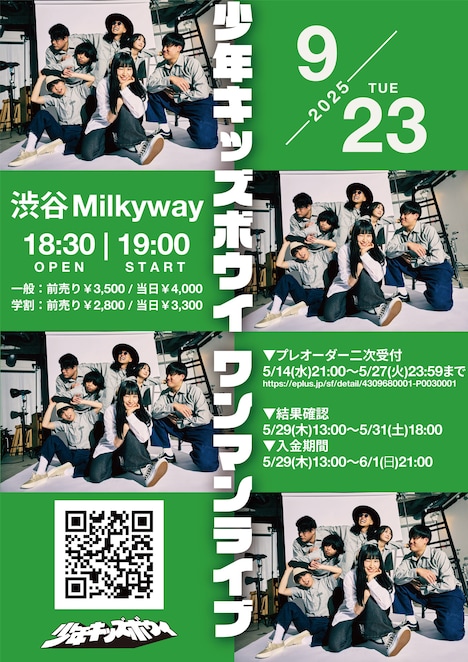 また少年キッズボウイは9月23日に東京・Shibuya Milkywayでワンマンライブを開催する。イープラスでは5月27日までチケットの第2次先行予約を受付中。