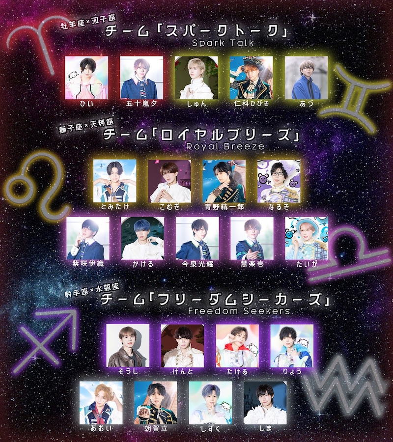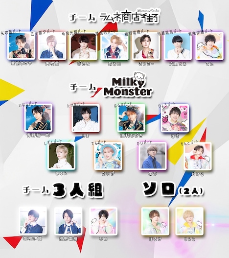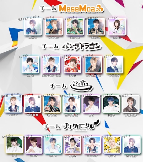 ようた(パンダドラゴン)/ てん(Milky Monster)/ 気まぐれプリンス(MeseMoa.)/ ぱっち(パンダドラゴン)/ ノックソ(MeseMoa.)/ 滝かなた(ReLIT)/ おと(ナナクロニクル)/ 早瀬颯馬(ラムネ商店街)
