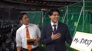 プロ野球はシーズン中、日本にいる時はなるべくリアルタイムで見ますし、海外にいる時でもハイライトで必ずチェックするくらい大好きなので、インタビュー中は選手の皆さんを目の前にして少し緊張しました。(笑)