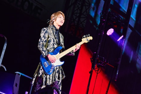 定刻の17:00ぴったりに場内が暗転すると、TERU(Vo)、TAKURO(G)、HISASHI(G)、JIRO(B)、それぞれのキャラクターを生かしたハリウッド映画さながらのスペクタクルなオープニングムービーが上映されBuddyの期待を高めていく。意表を突く登場方法で会場を沸かせたメンバーもいる中、ライブは1997年5月リリースのミリオンヒット曲「口唇」で勢いよく口火が切られた。