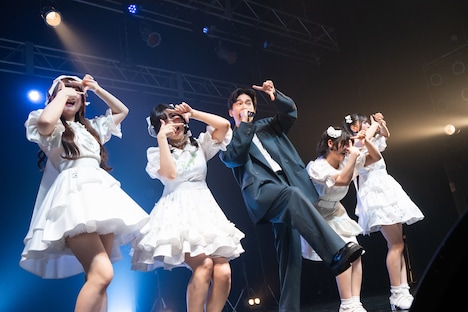 初めて清 竜人25を観る礼賛ファンも多い中、「我々も負けてられない!」と気合いを入れ直した清 竜人25は、クールでアーバンな「My Girls」「アバンチュールしようよ」、アッパーで運動量の高い「ラブ♡ボクシング」と緩急を付けてフロアを揺らす。「ラブ♡ボクシング」では竜人がシャドーパンチを繰り出しながら「ガードをかわして!」など叫びながら熱狂する観客をさらに煽った。さらにフロアを沸かすべく、清 竜人25はここで「Mr.PLAY BOY…♡」を投下。「スケベ!!」コールで双方のファンが1つになり、続く「A・B・Cじゃグッと来ない!!」で場内はカオスと化す。さらに最新のアッパーチューン「世界を愛せますように!」が歌われ、O-EASTはハッピーなムードで包まれた。