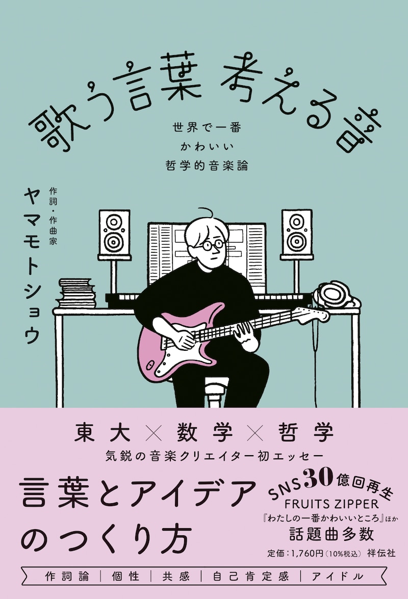 FRUITS ZIPPERの楽曲「わたしの一番かわいいところ」「NEW KAWAII」を筆頭に、バイラルヒットを連発している作詞家、作曲家、音楽プロデューサーのヤマモトショウ。「歌う言葉 考える音ーー世界で一番かわいい哲学的音楽論」は「現代の歌詞、音楽のつくられ方」についてつづった本で、「歌詞の書き方」「良い歌詞とは何か?」などのテーマを、哲学の知識などを用いながらユニークに考察している。音楽にまつわる「思考実験」としても楽しめる内容だ。