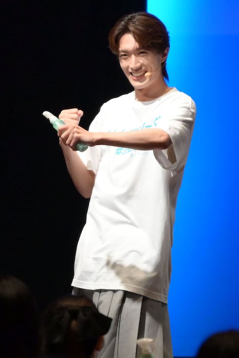 司会者に夏の思い出を聞かれ、佐野は「M!LKでリリースイベントを毎日のようにやっていたことですね。メンバー仲よく泣いたり、楽しくも大変でもある思い出なので印象に残っています」とコメント。続けて夏休みにやりたいことを問われ「夏休み……ハワイ! ハワイに行きたいです。サーフィンをして、そのあとにシーブリーズを使いたいです」と想像を膨らませた。オープニングトークを経て、イベントは本題へ。佐野はここでM!LKの仲間である塩崎太智、曽野舜太、山中柔太朗、吉田仁人の4人をステージに呼び込む。