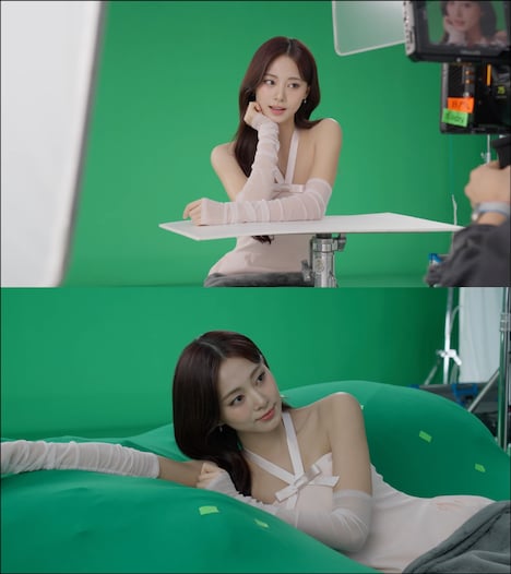 透明感のある白い衣装で登場したツウィは、まずリップの上に寝そべるシーンの撮影に入る。とろけるような優美なポーズを決め、カメラに向かってふいにウインクするツウィ。惹きつけて離さない表情でリップのとろけるような質感を体現した。また投げキスと柔らかな笑顔で甘い余韻を残しながら現場をあとにしたツウィに、スタジオでは自然と大きな拍手が沸き起こった。