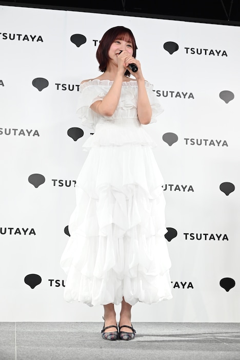 最後に富田は「“卒業写真集”と“1st写真集”、どっちにしよう?とスタッフさんと話し合って、続きがあるのかなという未来への希望を込めて“1st写真集”にしました。この写真集は私にとって価値観の変わるような、おこがましいですが、行ってよかった!と思える、幸せあふれる1冊になっていますので、皆さん“鈴花サーキット”を何周も巡っていただけるとうれしいです」と挨拶。するとスタッフから花束が渡され、「ありがとうございます!」と感激した様子で「こんなふうに優しいチームで作れた作品です」と笑顔を弾けさせた。