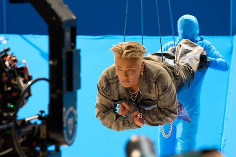 ELLYの撮影は壁を突き破るシーンからスタート。“全身で壁を突き破る”という初めてのアクションに、1回目は勢いのあまり少しよろけて着地した。ELLYは足元の瓦礫を見つめ、笑顔で「なるほどね」とつぶやくと、難易度の高いシーンでありながら2回目は完璧に着地。迫力のあるシーンに仕上げてみせた。ワイヤーアクションでは、浮き上がった瞬間に「うおー!」とハイテンション。足の角度やポーズを監督と相談しながら丁寧に撮影していき、完成した映像を観ると、「やべえ、超ドラゴンボールっすね!?」と興奮を隠せない様子だった。