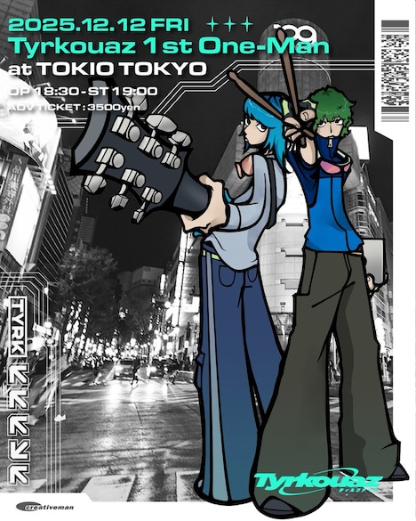Tyrkouazは12月12日に東京・TOKIO TOKYOで自身初となるワンマンライブを開催。イープラスでは8月24日23:59までチケットの最速先行抽選予約を受け付けている。
