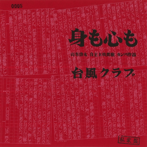 現在、メンバーの山本啓太(B)が自ら監督を務め、バンドのドキュメンタリーフィルムを製作している台風クラブ。「身も心も」は映画自主上映貫徹のための“カンパ作品”としてリリースされ、デジタル版のみが500円から、ソノシート&デジタル版が1500円からという“カンパ制”の販売価格が設定されている。販売場所は東京・武蔵野公会堂で行われる単独公演と、レーベル・NEWFOLKのBandcampのみ。