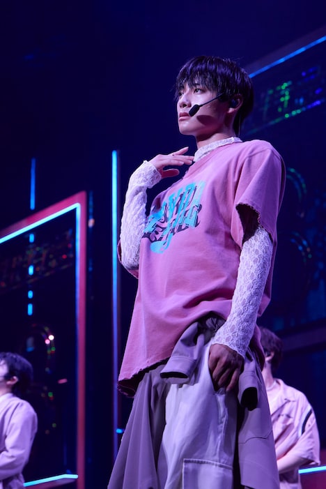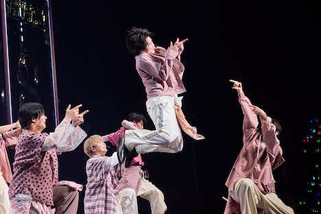 そして、ライブパートの最後に用意されていた「超えてアバンチュール」も、この曲でセンターを取るリョウガの遊び心によって各回異なる特別なアレンジが施された。リョウガは1番のサビと2番のサビのセンターポジションをメンバーに任せ、9日公演ではマサヒロとハルを、10日昼公演ではアロハとユーキを、10日夜公演ではカイとタクヤをお膳立て。リョウガに押し出された6人もまた、完璧にセンターの振りを踊って会場の熱気をブーストさせてみせる。また、10日昼公演ではカイの一発ギャグ「けんけんパソコン!」の“天丼”が随所に見られ、メンバーたちのこのイタズラ心にカイは「やめて……」と消え入りそうな声でタジタジに。10日夜公演ではリョウガが馬にまたがるジェスチャーから「抱きしめたい!」を放ったのを皮切りにステージ上が「抱きしめたい!」乱れ撃ちの様相を呈し、爆笑と熱狂が渦巻く中でファンミーティングはフィナーレへと突き進んでいった。