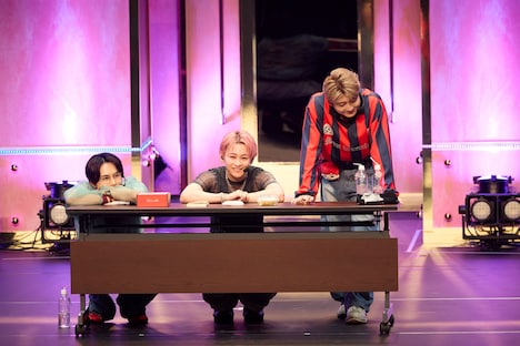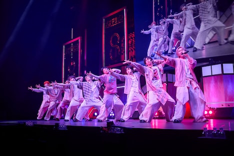 なお、10日夜公演のライブパートの1曲目には、「MORA MORA」ではなく「Steal a Kiss」が用意されていた。「『ステキス』が来たら笑ってもうてまう!」とタカシが張っていた伏線をしっかりと回収する展開で8号車を沸かせたた9人は、激しくも艶かしいダンスでオーディエンスの期待感を最高潮まで高めたのち、セリフパートを担うアロハ、タクヤ、ユーキが鮮やかな「抱きしめたい!」3連発を披露。ここまでのファンミーティングの流れを汲んだうえでの完璧なアレンジで、熱狂的な盛り上がりを作り出してみせた。