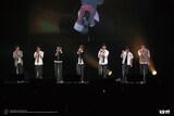 続いて、当日ファンから寄せられた質問に答えるQ&Aコーナーへ。ファンが質問を書いた付箋がびっしりと貼られたホワイトボードが運び込まれ、メンバーがじっくりと悩みながら、1枚ずつセレクトしていく。ドフンは韓国語で書かれた付箋の内容を自ら日本語に訳しながら、「ロールモデルは誰ですか?」という質問に「(SHINeeの)テミン先輩です。男らしいところを見習いたいです」と回答。またジュホは「自分がカッコいいと思う瞬間」について、「好きなスタイルの服を着て外に出たときです。どちらかというとシックなロックパンクスタイルが好きです」と、ファッションのこだわりを明かした。