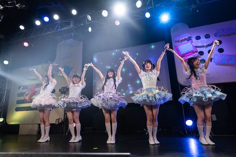 初披露の新衣装に身を包んで登場したChumTotoの5人は「Imaginary Chum」でライブの幕を開けると、「ゼリーの海で背泳ぎ眩しいや」、でんぱ組.incの「ムなさわぎのヒみつ?!」と3曲を連続でパフォーマンス。中盤には、きゅるりんってしてみて「ツインテールは20歳まで♡」、ミームトーキョー「リアリティ・ウォー」、虹のコンキスタドール「ガチ恋ですの♡あいうぉんちゅー!」「キミは無邪気な夏の女王~This Summer Girl Is an Innocent Mistress~」、でんぱ組.inc「我ら令和のかえるちゃん!」、リルネード「王道的なLOVEソング」と先輩グループの楽曲がメドレー形式で歌われた。さらにこの日ChumTotoは、初のグループ内ユニットに挑戦。柏葉、詩之宮、宮原の3人はきゅるりんってしてみての「イェイェ」、江本と瀬崎は根本凪、鹿目凛によるユニット・ねもぺろ from でんぱ組.incの「にゃんにゃん♡ちゅちゅちゅ♡」をデュエットで披露した。