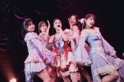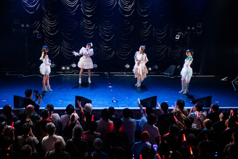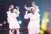 「交換日記」の曲中、フロアで双方のファンが肩を組み、東京女子流の山邊未夢が「みんな友だち!」と笑顔を見せるなど、強固な連帯感が広がる場内。続くシャッフルユニットによるコラボコーナーでその空気はさらに増大していく。フィロのス「ファイナル・アンサー」と東京女子流「kissはあげない」が披露された昼公演のコラボコーナーも大きな盛り上がりを見せたが、夜公演でも特別なパフォーマンスが用意された。まず東京女子流の大人びたナンバー「リフレクション」を、東京女子流の山邊と中江友梨、フィロのスの木葭ののと香山ななこの4人が披露。木葭と香山はグループに途中加入したフィロのスの後輩組だが、東京女子流ならではのスマートで神秘的な世界へ見事に溶け込んでみせた。